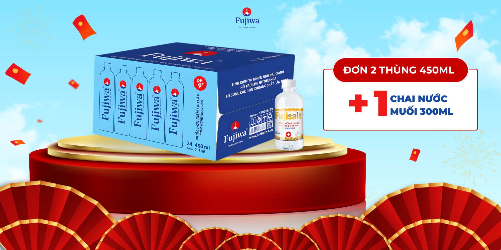 Trong tháng 1, khi mua 2 thùng nước ion kiềm Fujiwa 450ml, khách hàng sẽ được tặng 1 chai nước muối súc miệng Fujisalt 300ml. Dung tích nhỏ gọn, dễ mang theo khi đi du lịch, đi công tác hoặc di chuyển xa, giúp chăm sóc vòm họng và răng miệng mọi lúc, ngay cả khi không tiện mang theo chai lớn.
